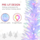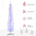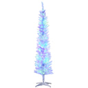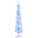 HOMCOM 7' Prelit Christmas Trees, Pencil Artificial Christmas Tree with Colourful Surface Tips, Colourful LED Lights, White