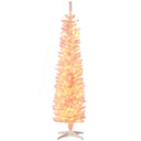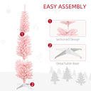 HOMCOM 6' Flocked Christmas Trees, Pencil Prelit Artificial Christmas Tree with Snow Branches, Pink