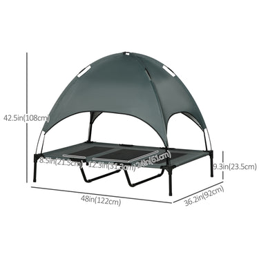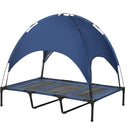 Treat your pet to the ultimate in relaxation with an elevated pet bed from PawHut. This dog bed not only keeps your dog comfortable and off the ground, but also promotes airflow to keep them cool. Included canopy top shields them from the sun on hot summer days. Simple design, just plug the canopy into the corners of the cot and secure it with the bungee cords. The lightweight yet strong powder-coated steel frame with four stable feet that ensure safe and level placement that won't tip over.