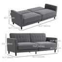 HOMCOM Convertible Bed with Couch, Button Tufted Fabric Sofa Bed with Adjustable Back for Living Room, Charcoal Grey