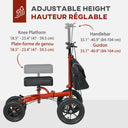 HOMCOM Adjustable Steerable Knee Walker, Foldable Knee Scooter with Rubber Wheels, Dual Brake, Crutch Alternative, Red