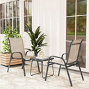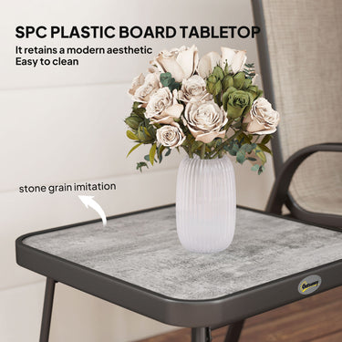 Outsunny Outdoor Bistro Set of 3, 3-Piece Patio Set with Breathable Mesh Fabric, Stackable Chairs and Square Table, Brown