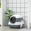 PawHut Foldable Large Cat Litter Box with Lid, Covered Kitten Litter Box w/ Automatic Cat Litter-Proof Sides, Deodorization, Easy to Clean, White and Grey