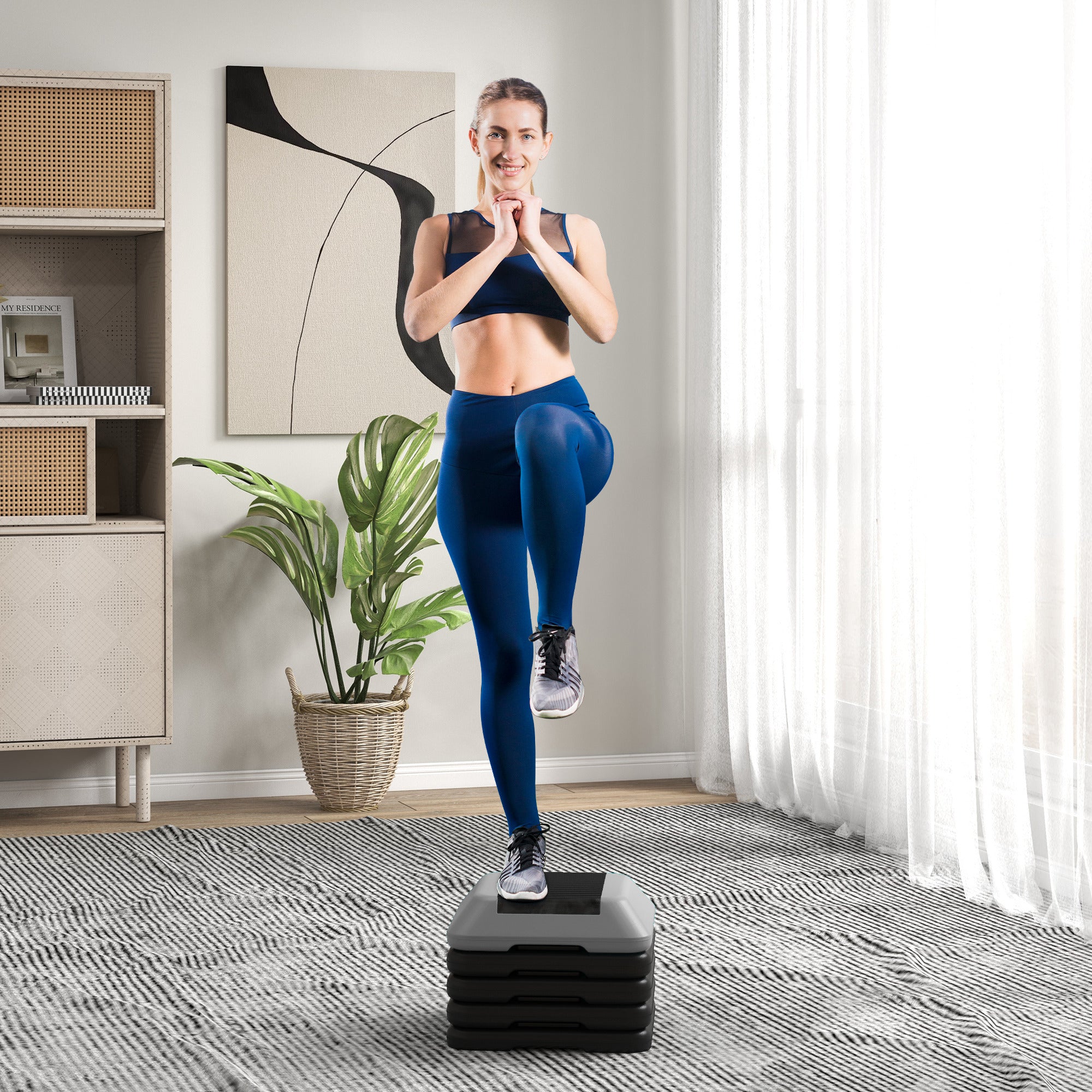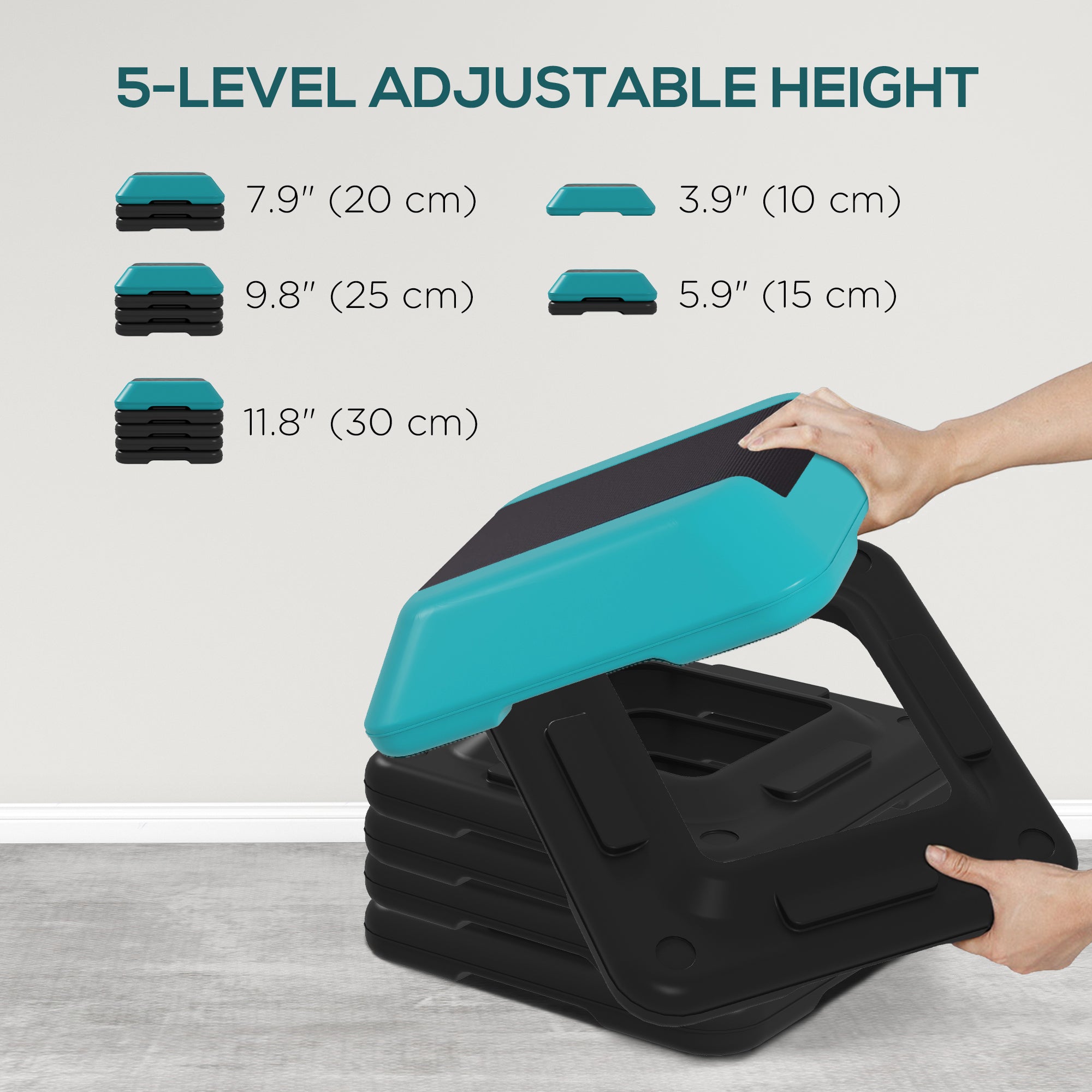 Step up your fitness game with the Soozier Aerobic Stepper! Easily adjustable to 5 heights, this stepper ensures a versatile workout for all fitness levels. Enjoy a slip-free experience thanks to its non-slip surface and bottom, ensuring your focus stays on your exercise. Lightweight and easy to store, it's the great tool for anyone looking to enhance their aerobic routine, supporting up to 330 lbs (150kg).