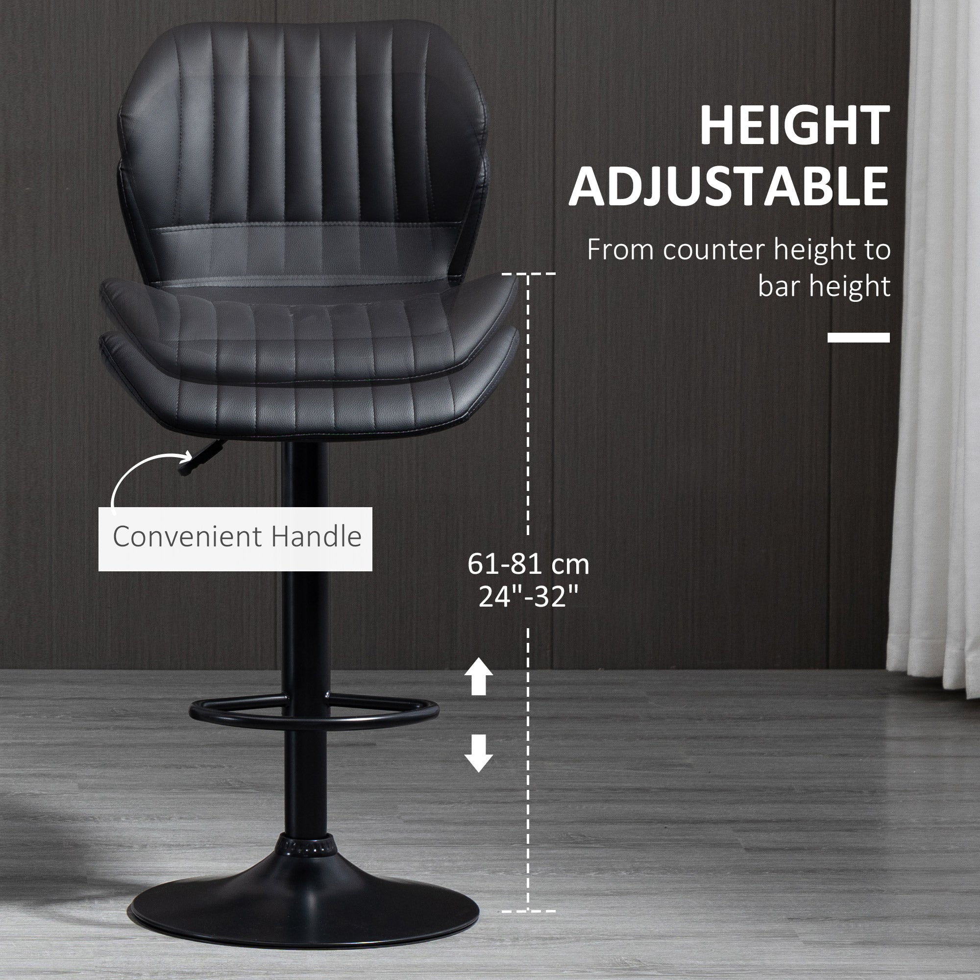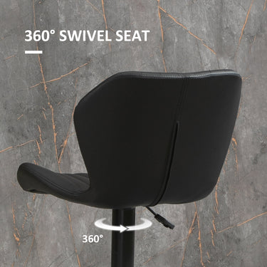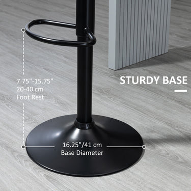 Liven up your home with a chic set of 2 bar stools that will turn heads. The shell-shaped backrest is novel and will help you relax your body. The 360° swivel seat and footrest allow you to chat freely with friends. Its height is easy to set to counter or bar height. Enjoy today with HOMCOM swivel bar stools.