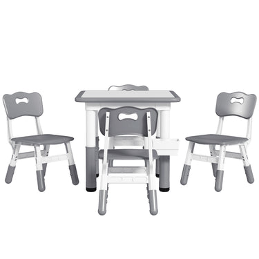 Qaba 5 Pieces Toddler Table and Chair Set, Height Adjustable Activity Table and Chair Set for Nursery Classroom, Grey
