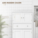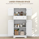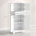 Upgrade your kitchen with the food pantry cabinet from HOMCOM. Featuring recessed doors and silver handles on sleek finish body, this pantry storage cabinet adds modern flair to any space. With three tiers in two cabinets and a handy middle drawer, organize your kitchen essentials has never been easier. Besides, a 3-level adjustable shelf makes it a versatile kitchen cabinet. Say hello to a clutter-free kitchen.
