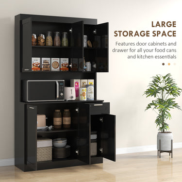 HOMCOM 71" Kitchen Pantry Cabinet, Storage Buffet with Hutch, Adjustable Shelves for Living Room, High Gloss White