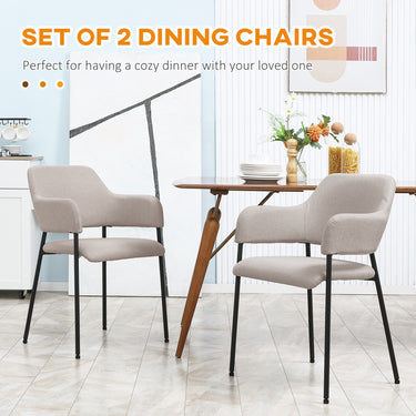 HOMCOM Modern Dining Chairs Set of 2, Linen Touch Fabric Accent Chairs with Armrests, Kitchen Chairs with Steel Legs for Living Room, Beige
