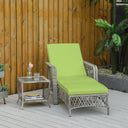 The rattan outdoor lounge furniture from Outsunny comes with a lounger, cushion, and two-tier side table. The pool lounge chair's backrest has five adjustable positions for maximum relaxation and comfort. The side table also has a glass top to keep your drinks within easy reach. The rattan outdoor lounge furniture can be utilized indoors or outdoors in your home. It will ensure to feel relaxed while sunbathing with Outsunny outdoor furniture.