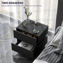 HOMCOM Bedside Table with Charging Station and LED Light Modern Nightstand with USB Ports AC Outlets Drawers Remote, Black