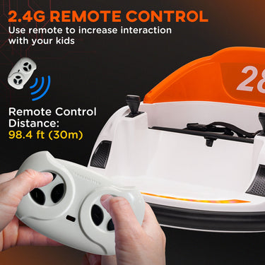 Zoom and spin into fun with the Qaba Kids Bumper Car! This electric car for kids offers thrilling 360° spins and the ability to drive forwards and backwards. Whether using remote control or letting your child take the wheel, this ride on car lights up joy with LED lights and music, ensuring endless entertainment on any asphalt, brick, or cement surface.