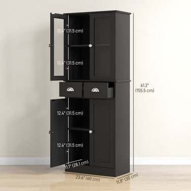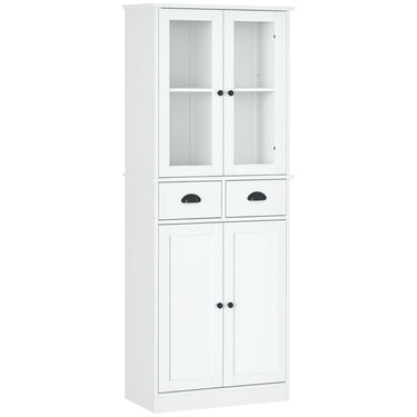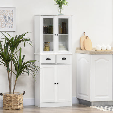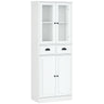 HOMCOM 61" Kitchen Pantry Cabinet, Freestanding Farmhouse Buffet Storage Cabinet with Soft Close Glass Doors and Adjustable Shelves, White