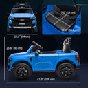Qaba Ford Ranger Licensed 12V Ride on Car Battery Powered Kids Truck w/ Rear Storage Remote, Spring Suspension, Blue