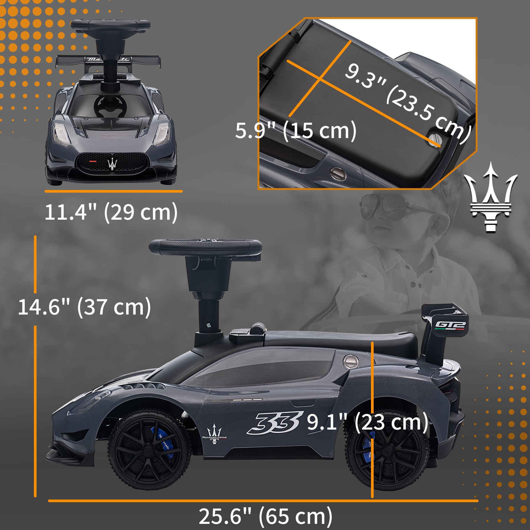 Zoom around with the Qaba push car for toddlers! Enjoy a realistic driving experience in this licensed Maserati GT2 push car, featuring a foot-to-floor design great for toddlers. The steering wheel comes with a fun horn and music buttons, making every ride a joyous adventure. Plus, the silent, wear-resistant wheels ensure a smooth and quiet journey. Suitable for little drivers aged 18-60 months.