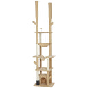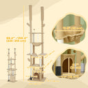 Transform your home into a feline paradise with the PawHut Floor-to-Ceiling Cat Tree! This adjustable height cat tower fits spaces 88.6" -100.4" (225-255cm), maximizing vertical play area while the stable base ensures safety. Includes two cozy cat hammocks and a plush cat cave, making it an excellent cat condo and scratching post for indoor cats, suitable for lounging and play!