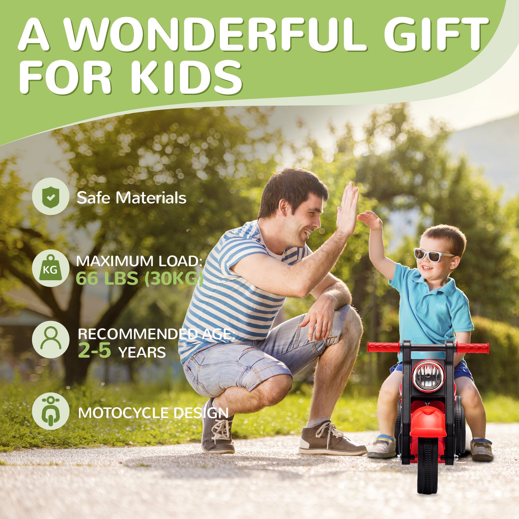 Delight your 2-5-year-old with the Qaba toddler push car, a charming, musical, and bubbly motorcycle. Its foot-to-floor design helps develop walking independence, while the easy-to-grip handles make sure safety. Featuring fun music and a colourful design, this ride-on toy is great for engaging parent-child bonding and provides a fun, interactive way for your little kids to learn and grow.