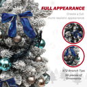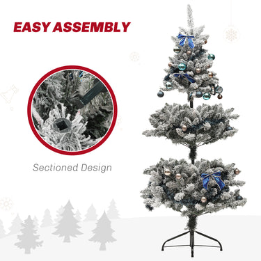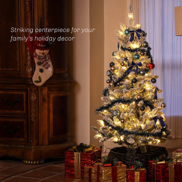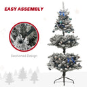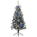 HOMCOM 5ft Prelit Artificial Christmas Tree with Blue Ornaments, Flocked Christmas Tree with LED Lights for Holiday