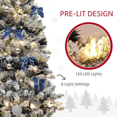 Light up your holiday spirit with the HOMCOM artificial Christmas Tree with blue-themed ornaments! It comes pre-lit with LED lights, offering settings across 8 dazzling modes. Its flame-retardant branches ensure a safe, festive glow, transforming any space into a winter wonderland. Set on a stable steel base, this xmas tree is the centerpiece your holiday celebrations deserve!