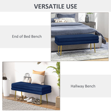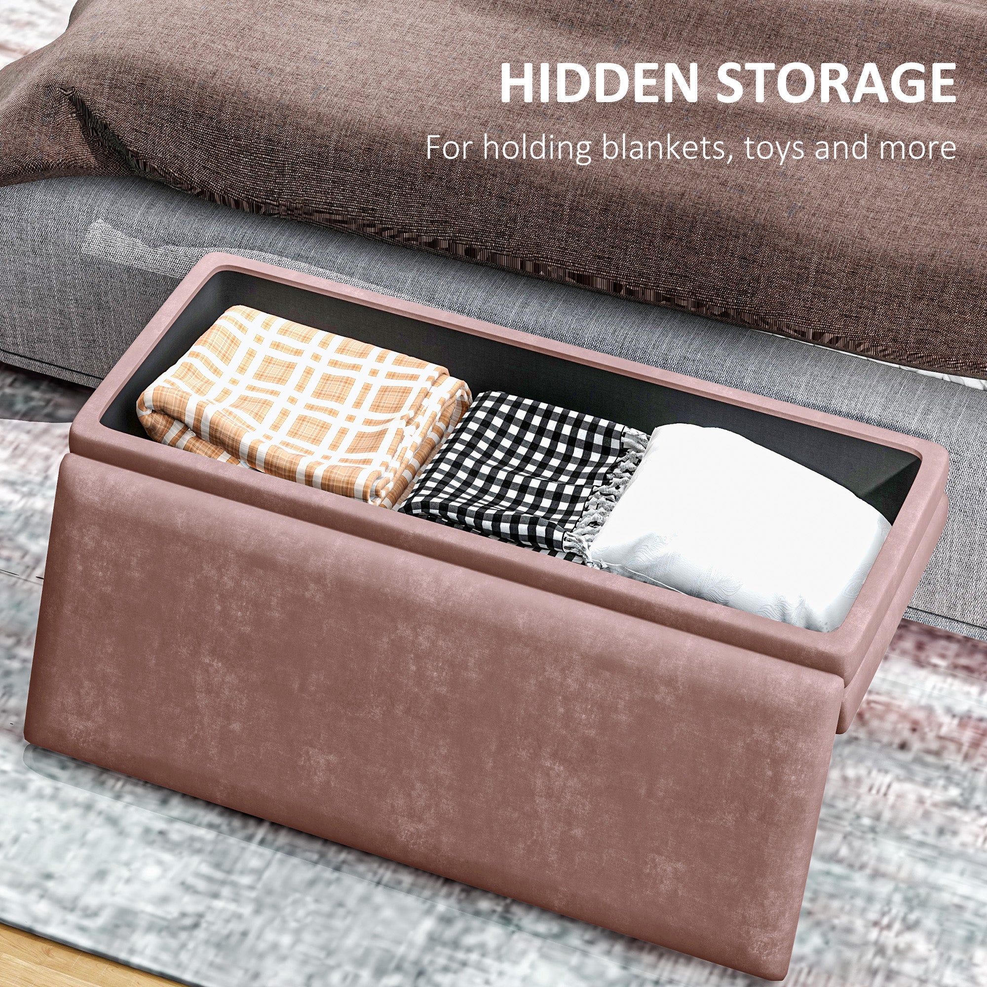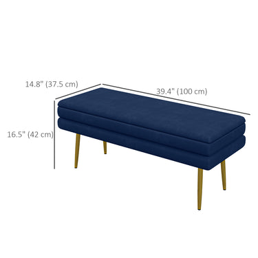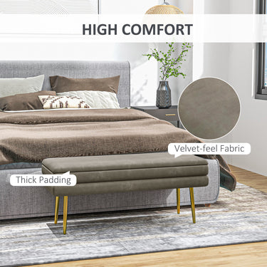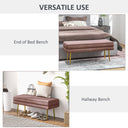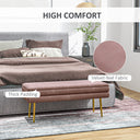 HOMCOM End of Bed Bench, Velvet-feel Upholstered Bench with Thick Padded Seat and Steel Legs, Modern Bedroom Bench, Pink