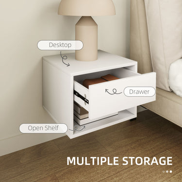 HOMCOM Floating Nightstand Set of 2, Wall Mounted Bedside Table with Drawer for Bedroom, White