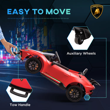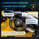 Rev up the fun with the Qaba Lamborghini Huracan kids electric car! This officially licensed ride dazzles with lights, horn, and a USB port for music, creating a truly immersive driving experience. Plus, the convenient auxiliary wheels and tow handle make it easy to move, ensuring your little rider's adventures are endless and safe.