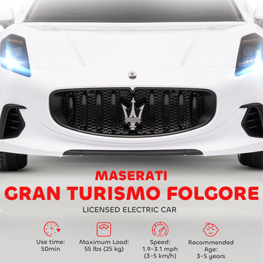 Qaba 12V Maserati Gran Turismo Licensed Kids Electric Car w/ Remote Control, Soft Start, LED Lights, Music, Horn, MP3, White