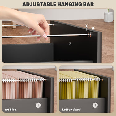 - • Large drawer underneath with adjustable hanging bar for A4 and letter-sized files