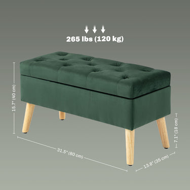 Transform your space with the HOMCOM storage ottoman bench, a masterpiece of style and functionality. Its elegant button tufting and plush velvet-feel fabric surface make it more than just a storage chest-it's a statement. Tuck away blankets and pillows beneath its lid and enjoy unmatched comfort with its thick foam padding. A true chameleon, this piece serves beautifully as a foot stool, bedroom bench, or ottoman stool.