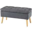 HOMCOM Storage Ottoman with Lid, Velvet Upholstered Storage Bench with Wood Legs for Living Room, Charcoal Grey