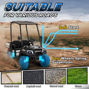 - • Sunshade, rear storage, music, horn and lights bring realistic fun