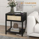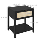 HOMCOM Boho Nightstand, Bedside Table with Rattan Drawer and Open Shelf, Side End Table for Bedroom, Living Room
