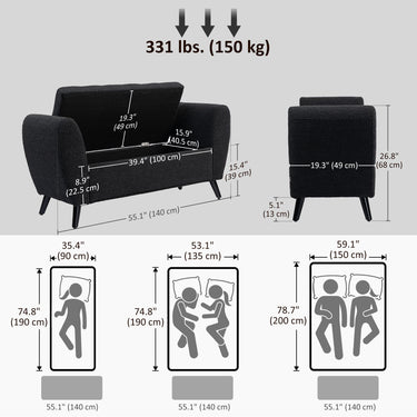 - • Seat Size: 39.4" W x 19.3" D x 17.7" H (100 x 49 x 45 cm)
