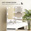 HOMCOM Makeup Vanity Desk with 3-Panel Mirror and 10 LED Lights, Dressing Table with 5 Drawers and Shelves for Bedroom, White