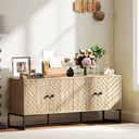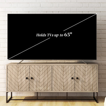 Transform your space with the HOMCOM buffet cabinet with storage, featuring eye-catching Chevron patterns and a chic two-tone effect. This versatile piece doubles as a TV stand for up to 65" screens and includes spacious adjustable shelves in its cabinets. Stylish square handles and a robust steel base round out the appeal, making it an optimal choice for any kitchen, living room, or entryway.