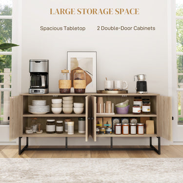 HOMCOM Sideboard Buffet Cabinet with 2 Adjustable Shelves and Steel Base, TV Stand, Coffee Bar Cabinet for Living Room, Oak