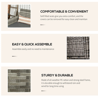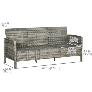 Outsunny 3-Seater Wicker Sofa, PE Rattan Outdoor Couch Conversation Furniture with Removable Cushions for Patio, Garden, Grey