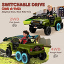 Adventure awaits with the Qaba battery car for kids! This 12V 7AH electric car features a powerful four-motor system, allowing a choice between 4x4 or 2x2 driving, suitable for an hour of fun on various flat surfaces. Equipped with shock-absorbing suspension and three speed settings controlled by a parent remote, this ride on car with remote control keeping a smooth and safe journey for every little explorer.