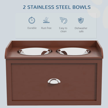 PawHut Elevated Dog Bowls Raised Pet Feeding Station with Storage 2 Stainless Steel Bowls, 23.6"x11.8" x14.2", White