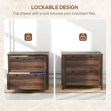 Is your office cluttered and lacking storage? Keep essentials organized and within reach with HOMCOM's storage cabinet. Featuring two spacious drawers with hanging rails, it accommodates A4, legal, and letter-sized documents, ensuring a tidy workspace. Say goodbye to messy piles and lost items with this sleek, efficient file cabinet.