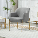 Accent chairs make cozy corners a reality! They can be placed in a corner or under a window to create a cozy reading nook or a delicate conversation area. They can even be incorporated into hallways or less conventional spots anywhere you like. The linen-touch surface, padded seat, and seamlessly styled back and armrests offer optimum comfort, while the gold steel legs add a beautiful and bold touch to your home.