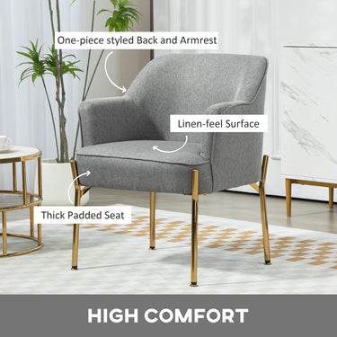HOMCOM Fabric Armchair, Modern Accent Chair with Metal Legs for Living Room, Bedroom, Home Office, Cream White