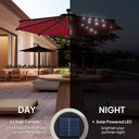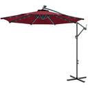 Keep yourself protected whilst enjoying the sun all-day long with this patio umbrella with solar lights from Outsunny. The polyester canopy provides protection from direct sunlight and heat. Using a crank mechanism for effortless opening and closing, the offset patio umbrella's angle is adjustable to keep you covered all-day long. Powered by panel solar, the LED lights on the ribs can provide you more lights at night.