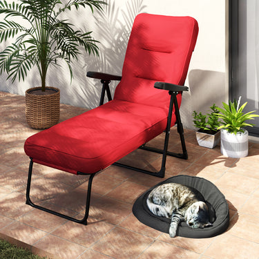 Outsunny Outdoor Lounge Chair with Padded Cushion, Folding Reclining Patio Garden Chair with Recline Back, Footrest, for Poolside, Patio, Blue