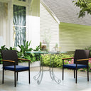- • Set of 2 rattan chairs enhances group dining experiences