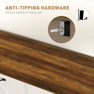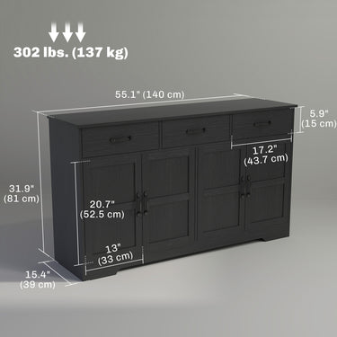 Elevate your space with the HOMCOM sideboard buffet cabinet. It features three drawers and two cabinets with adjustable shelves for easy organization. Modern shaker doors and contrasting colours add style to any dining room, coffee bar, or entryway. Built for stability with an anti-tip kit and solid construction, it's a functional and stylish solution for storing kitchen essentials and more throughout your home.