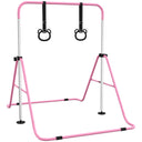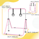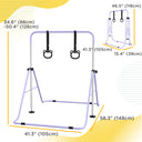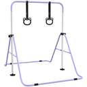 Qaba Kids Gymnastics Bar, Adjustable Height Folding Horizontal Bar with Gymnastics Rings, Non-slip Rubber Floor Rings, Purple