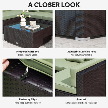 Create a sophisticated retreat on your urban terrace with the Outsunny 7-Piece Outdoor Patio Furniture Set. This set combines modern design with exceptional comfort, perfect for hosting elegant gatherings. Its reconfigurable feature allows you to customize the layout, ensuring your space is both stylish and functional. Crafted to withstand diverse weather conditions, this durable set promises longevity, enhancing your social life and adding a touch of contemporary elegance to your home.