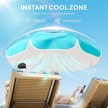 Soak up the sun safely with the Outsunny Beach Umbrella, featuring a silvering coating polyester cloth that boasts UPF50+ protection. Effortlessly open it with a hand-push action and secure with the bottom sand anchor. The tilt mechanism and adjustable height ensure you're always covered, making this lightweight, portable beach umbrella your go-to shade companion for every sunny escape.