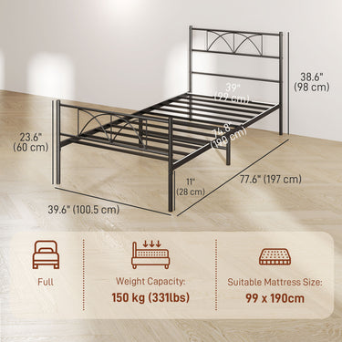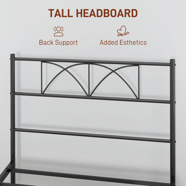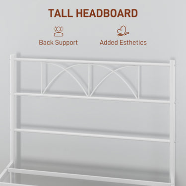 Make dream times wonderful with this double bed frame with headboard from HOMCOM. The modern style makes it suitable for practically any bedroom space with various interior decors. Made from powder-coated steel frame with 12 slats and central legs to keep you supported. Comes with spacious under-bed gap, giving you handy and out-of-sight storage space to keep bedroom tidy and neat. HOMCOM is here to elevate your sleep experience and help everyone to enjoy your own nighttime.